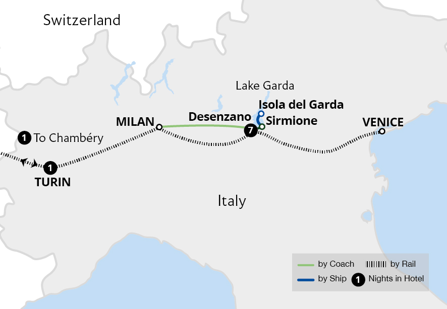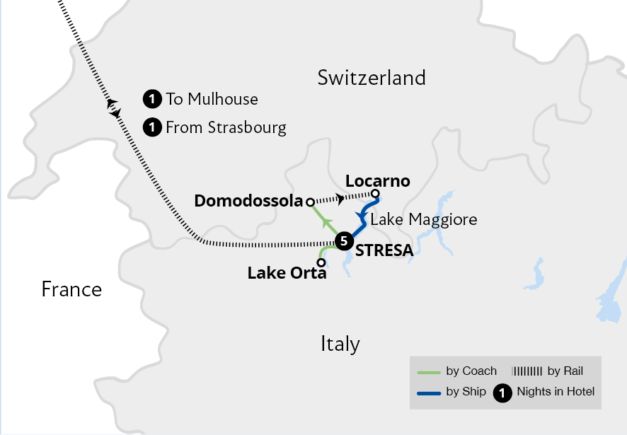 Explore the serene beauty of Italy's lakes from a base in the attractive town of Stresa, a haven for artists and writers over the centuries nestled on the shore of Lake Maggiore. Enjoy a cruise to an island monastery on Lake Orta and explore the lakeside village of Orta San Giulio. Journey through the Alps to Switzerland on the Centovalli...