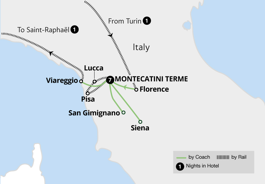 Very busy tour if you do everything on offer. We did most of the tour. Lots of interesting train and coach journeys. Some changes in train schedules before and during the trip but GRJ are quickly on the case to reorganise things as neccessary. Tuscany is stunning and the small towns are lovely. Florence is very crowded but if you are interested in art then it is obviously a worthwhile visit. Visit to St Raphael could have been longer as we only had a couple of hours to explore there in the evening, really, and it looked lovely.