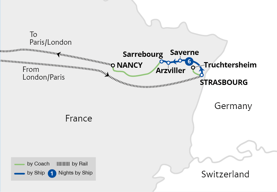 After, it's time to disembark our barge ship and head home. We transfer to the railway station in Strasbourg and catch the train to Paris for an onward journey to London St Pancras.